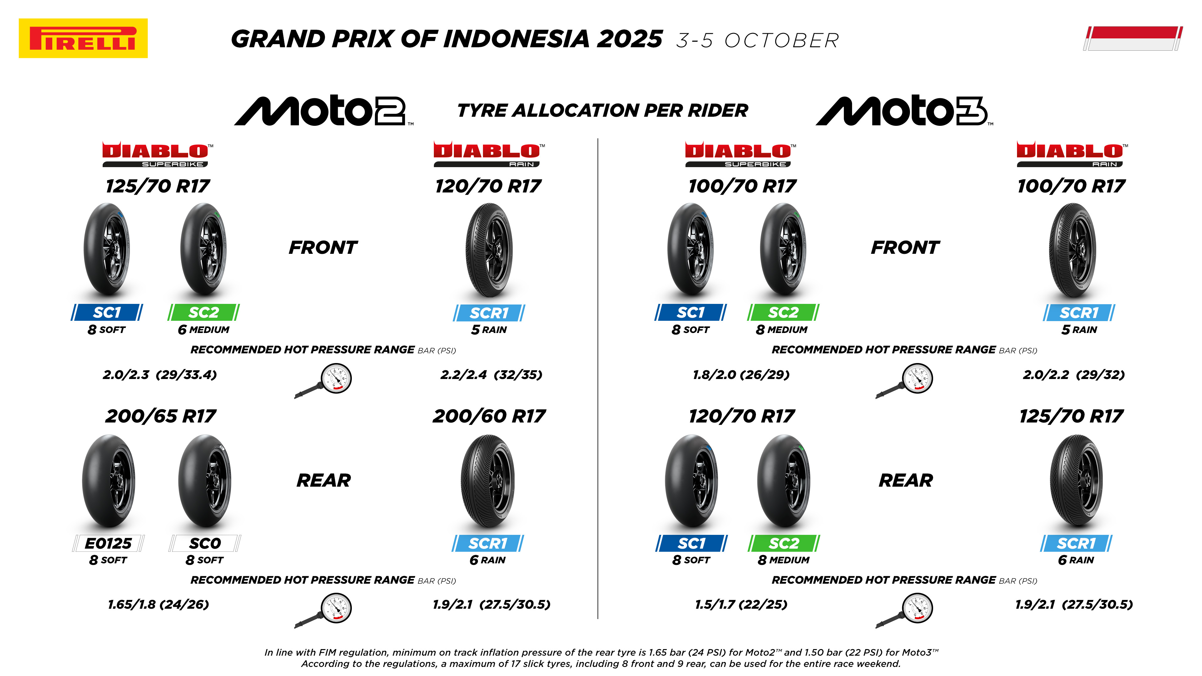 Pirelli has confirmed its tyre allocations for the Moto2 and Moto3 classes at the Indonesian Grand Prix, held from 3 to 5 October 2025 at the Pertamina Mandalika International Circuit in Lombok. This event marks the championship's second consecutive Asian round, moving from Japan to the Indonesian island.