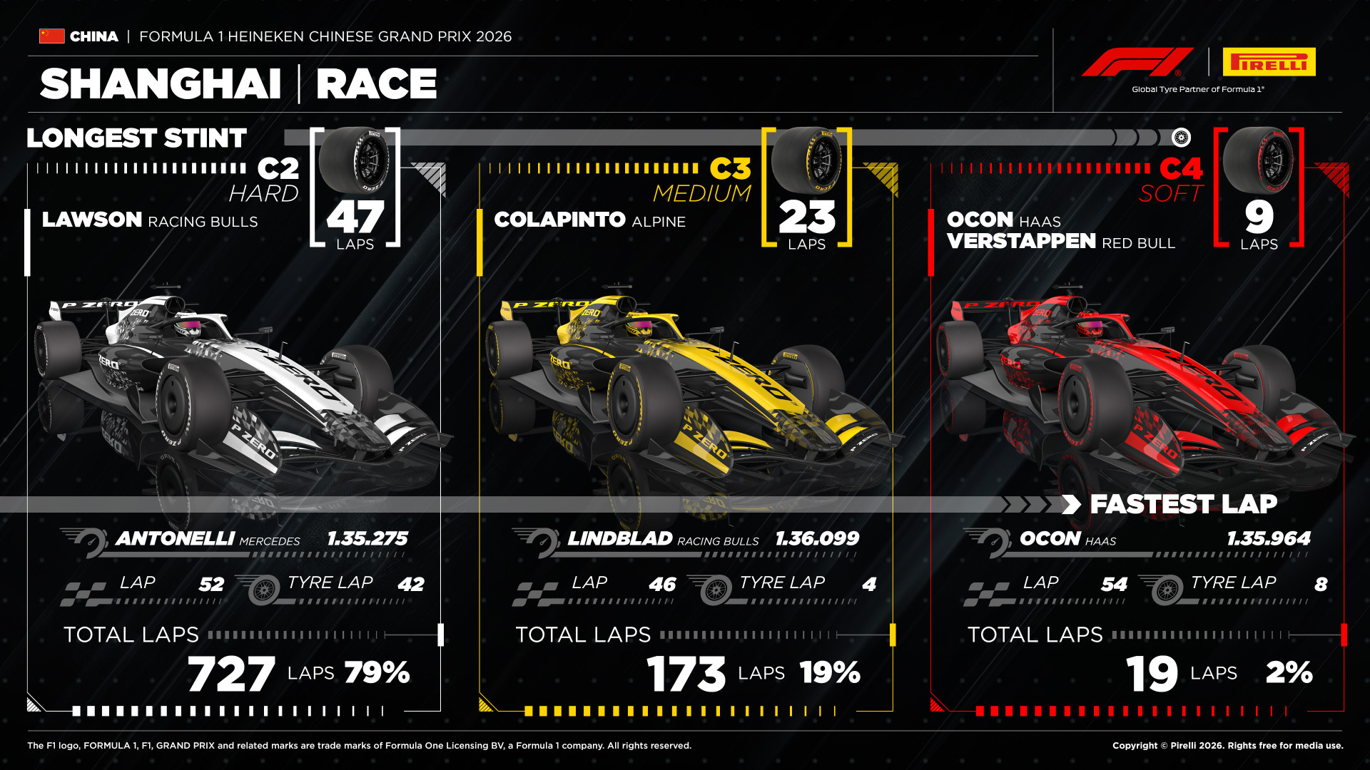Dario Marrafuschi, Pirelli Motorsport Director, said, “Firstly, I would like to congratulate Kimi Antonelli on his first Formula 1 victory. It has been exactly 20 years since an Italian driver last triumphed in a Formula 1 Grand Prix, and this historic moment occurred today in a race filled with overtakes and plot twists. As expected, the one-stop strategy proved to be the most effective in Shanghai, and the teams did not change their approach even when a Safety Car neutralised the race on lap nine. Instead, the pit window for those who had started on Medium was brought forward.
