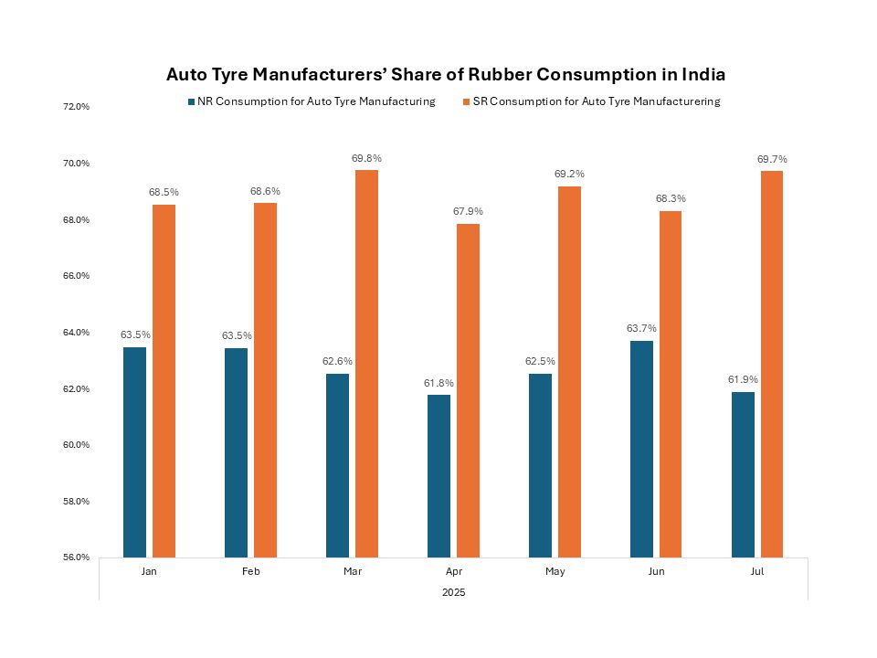 The automotive tyre industry remains the primary market force, consuming 62.8 percent of all natural rubber and 68.9 percent of synthetic rubber. This sustained demand from tyre manufacturers occurred alongside mixed vehicle sales figures. While passenger car sales experienced a slight decline of 0.1 percent, this was counterbalanced by healthy growth in the two-wheeler and three-wheeler segments, which increased by 0.9 percent and 6.5 percent, respectively.